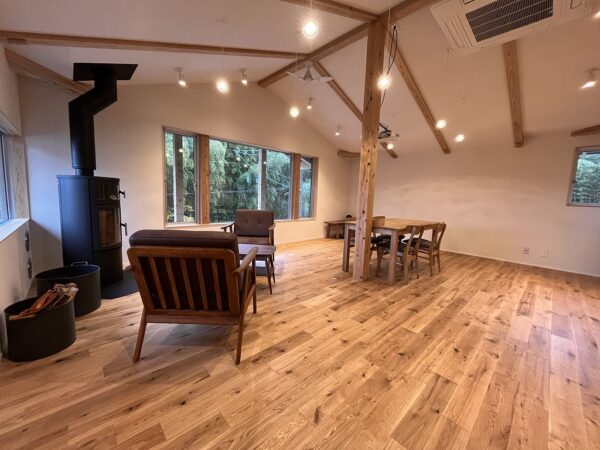 内装ももちろん、こだわりがちりばめられています!階層は傾斜を生かして中二階を挟んだ